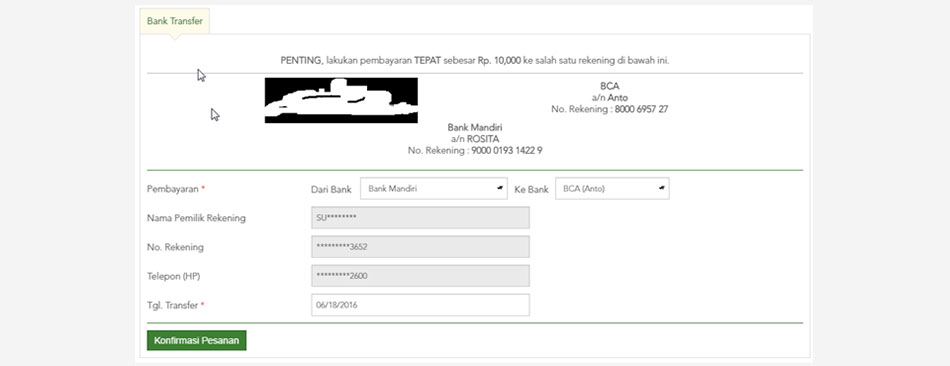 Tahap 05Setelah anda meng klik tombol BELI SEKARANG anda akan di arahkan untuk mengisi data akun bank.Beli Voucher